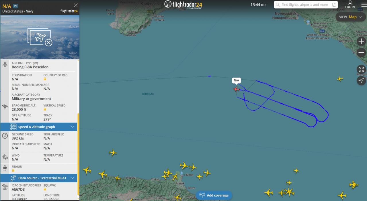 Gerçek zamanlı uçuş bilgilerini gösteren Flight Radar24 uygulamasından tespit edilen verilere göre ABD ordusuna ait Boeing P-8A Poseidon askeri casus uçağı bugün İtalya’nın Palermo kentinden havalanarak Yunanistan ve Bulgaristan üzerinden Romanya semalarına ulaştı.