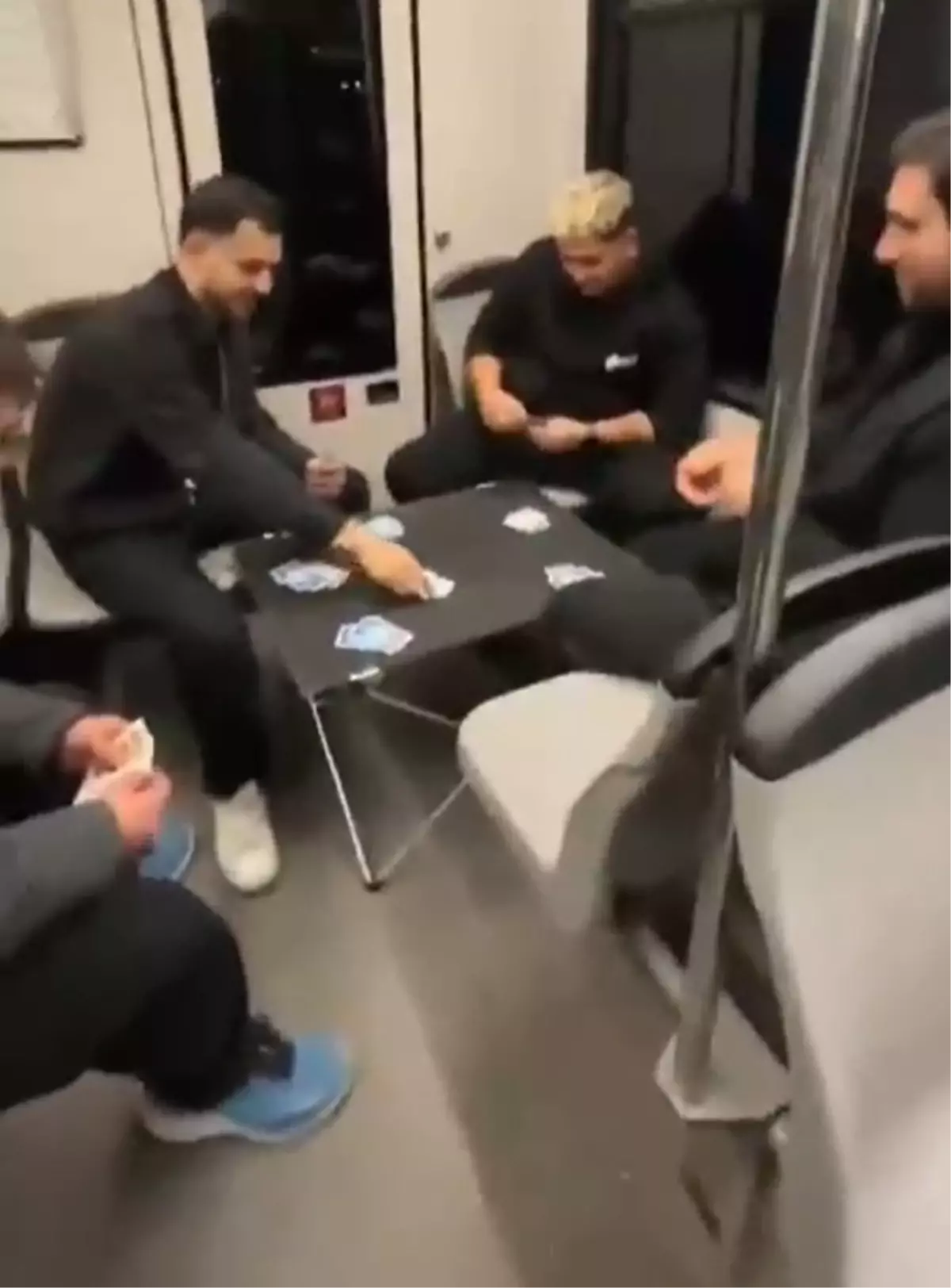 Kent içi ulaşım için metroyu tercih eden 4 kişilik arkadaş grubu, vagonun en arkasına geçip, açtıkları kamp masasında kağıt oyunu oynayarak seyahat etti. Grubun yolculuğu, metrodaki diğer yolcular tarafından cep telefonu kamerasıyla kaydedildi.